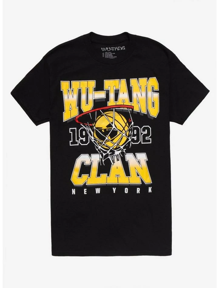 You can’t talk about hip-hop without mentioning the Wu-Tang Clan! Trace one of the most influential hip-hop groups back to their roots with this tee! Featuring a basketball dunked in a net, framed by the group’s name in block lettering, plus “1992” and “New York.”