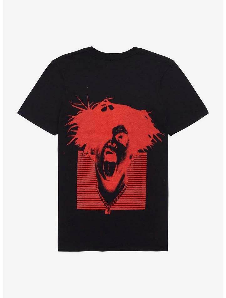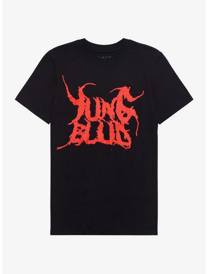 Fleabags, unite! This YUNGBLUD tee is for you. The front shows a heavy metal-style text logo in red and the back shows a photo negative portrait of the artist screaming.